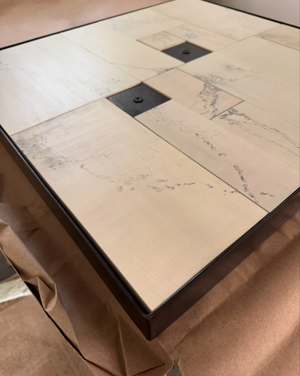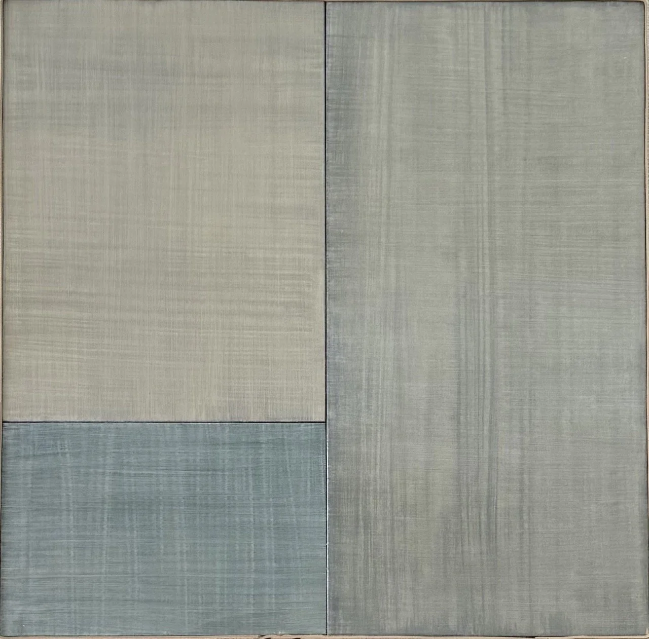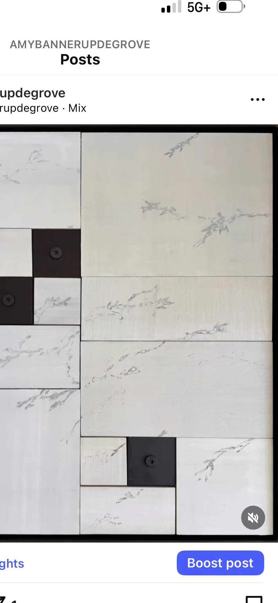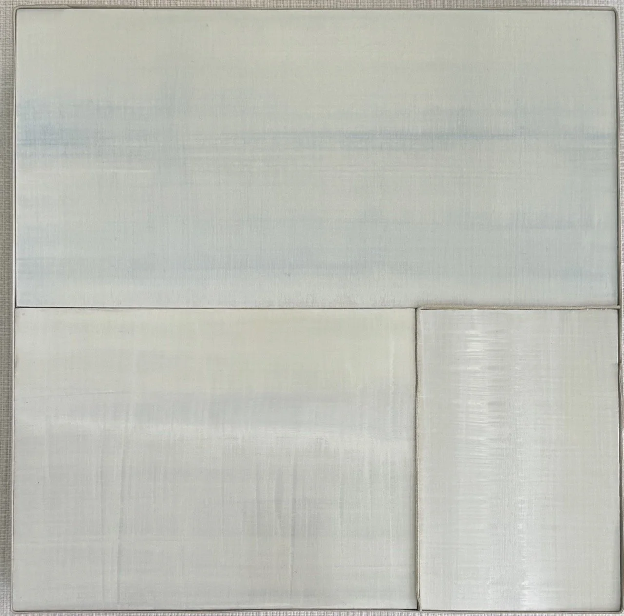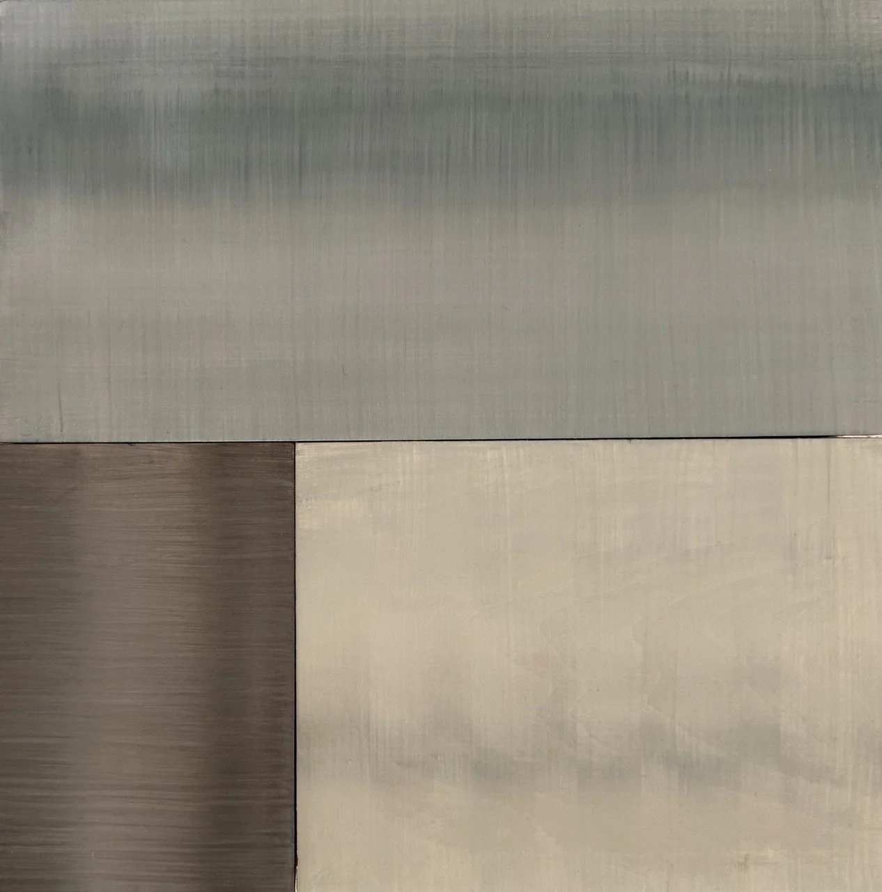 'Current' 2023 Acrylic glazed wood birch panels framed in vintage leather and contained in steel grid frame with brass corners  SOLD View fullsize